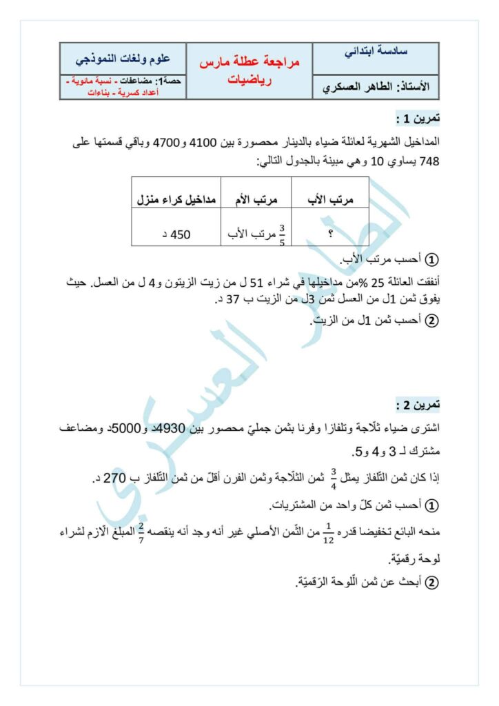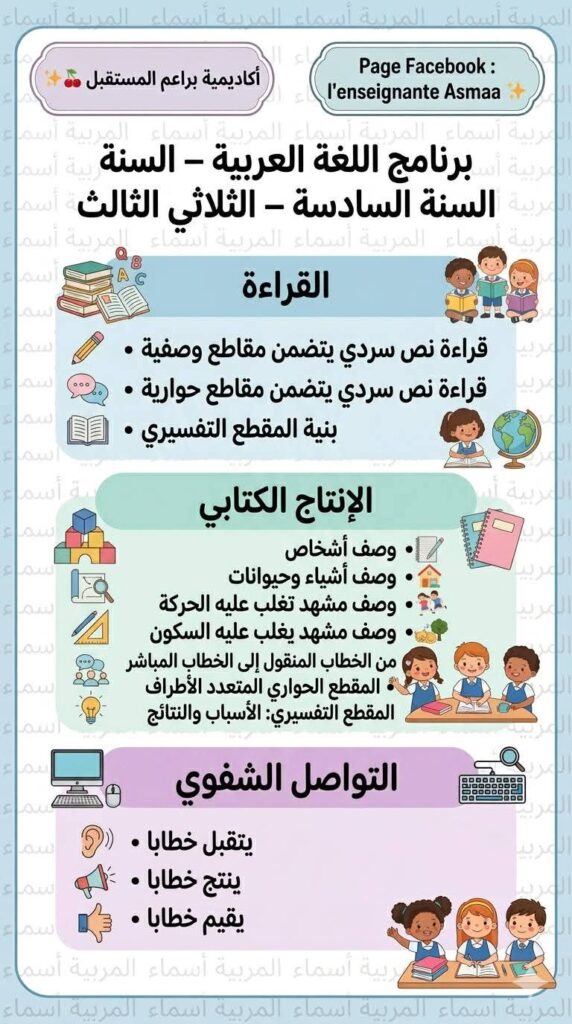 السنة السادسة, ايقاظ علمي, رياضيات, عربية, فرنسية, مواد اجتماعية