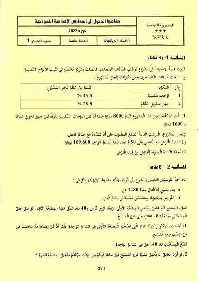 مناظرات الدخول الي مدارس نموذجية سنة سادسة مع الاصلاح