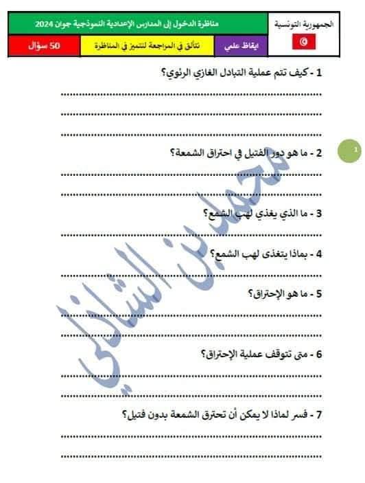 سنة سادسة – 50 سؤال + الإصلاح في مادة الإيقاظ العلمي بمثابة حوصلة لكل البرنامج