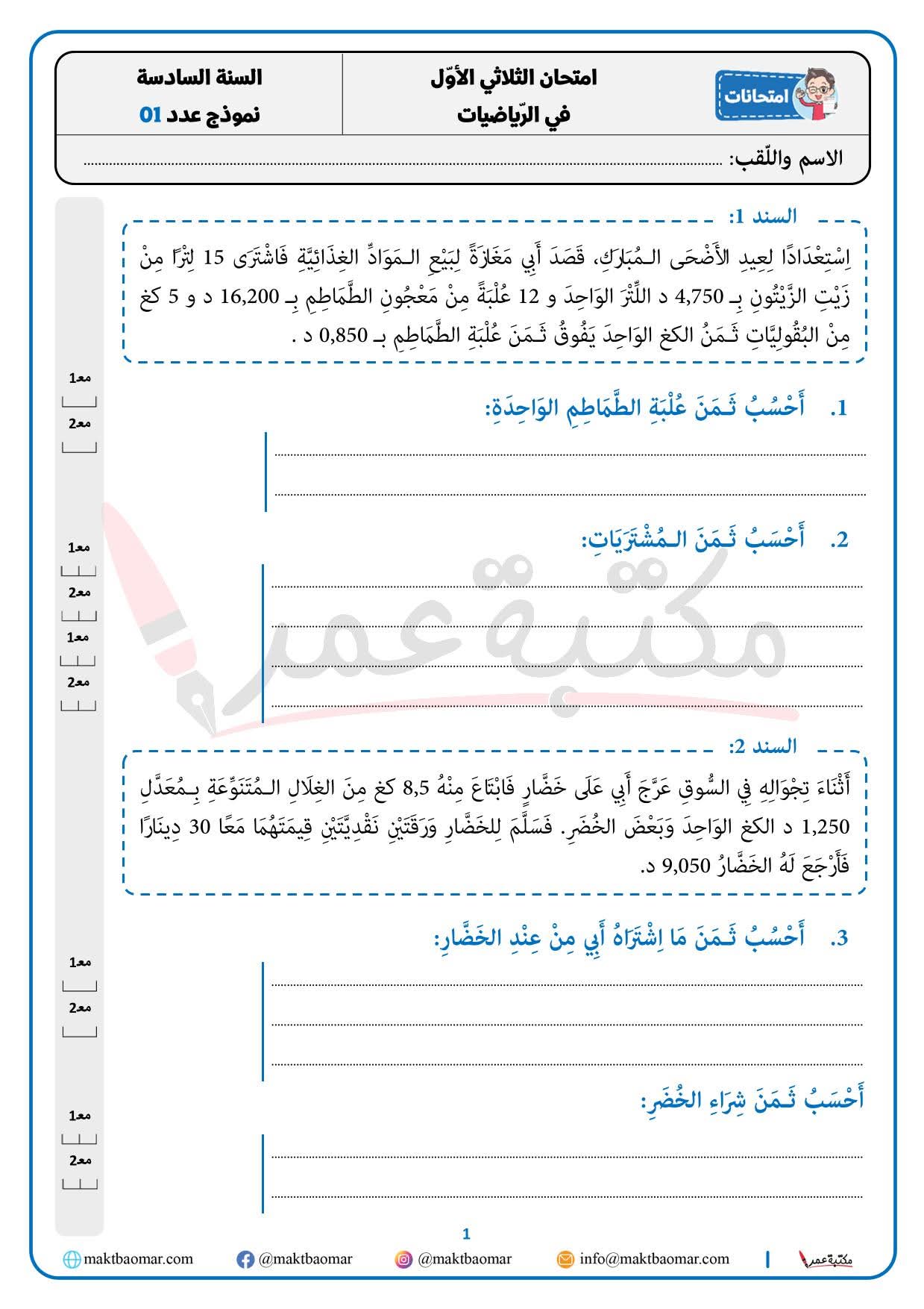 امتحانات رياضيات السنة السادسة 6️⃣ الثلاثي الأولبواسطة Admin / 1 نوفمبر، 2025 امتحانات رياضيات السنة السادسة 6️⃣ الثلاثي الأول