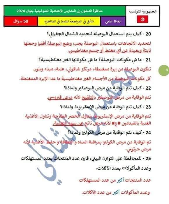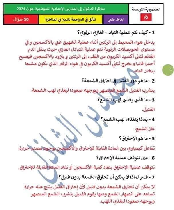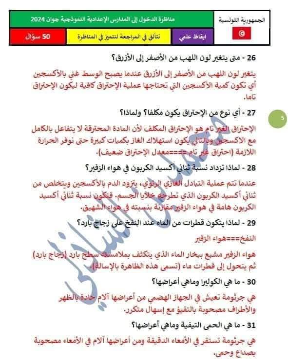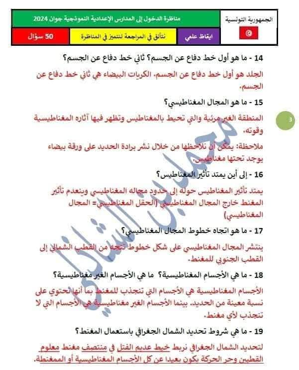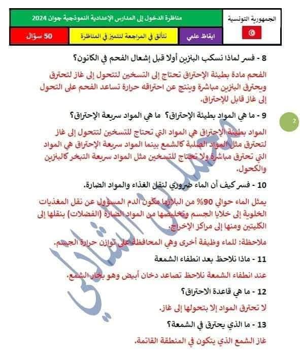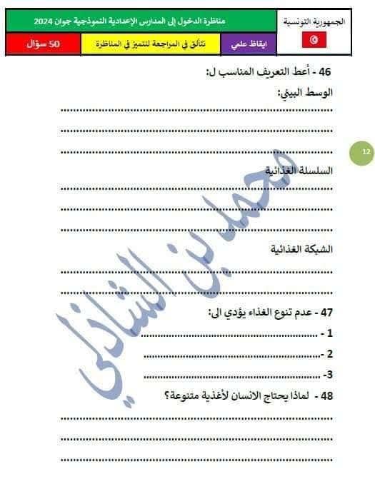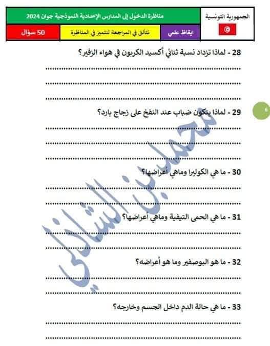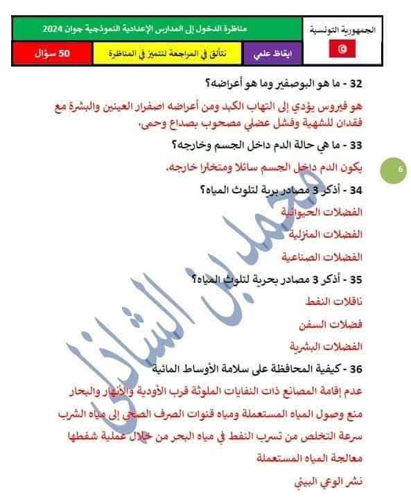 سنة سادسة – 50 سؤال + الإصلاح في مادة الإيقاظ العلمي بمثابة حوصلة لكل البرنامج