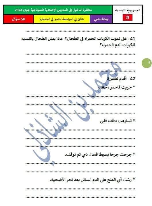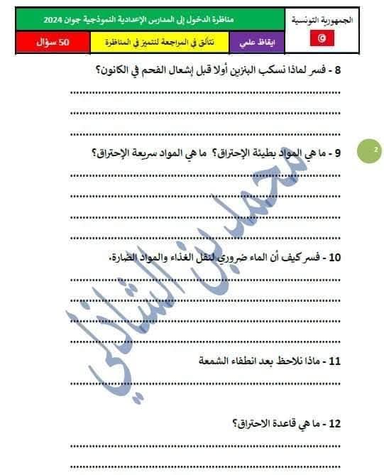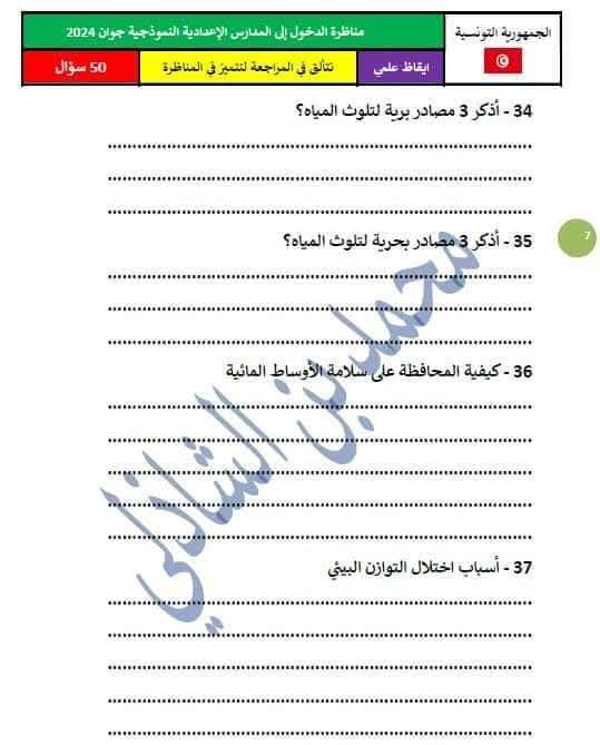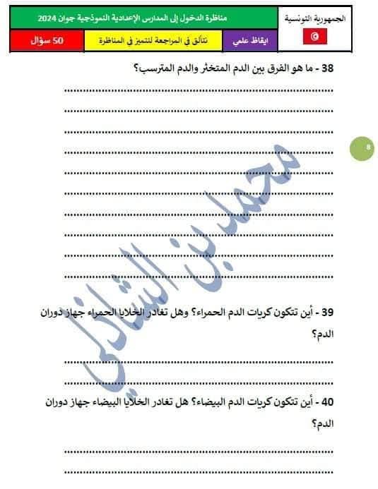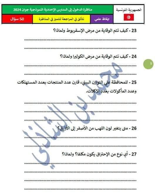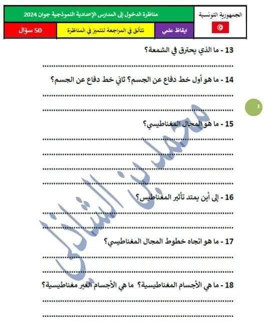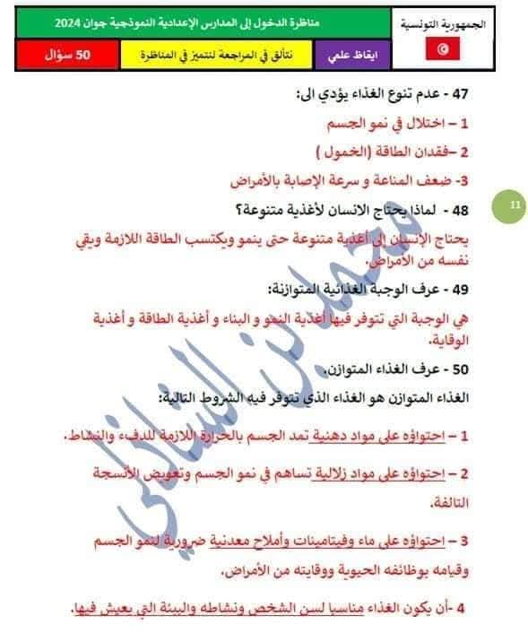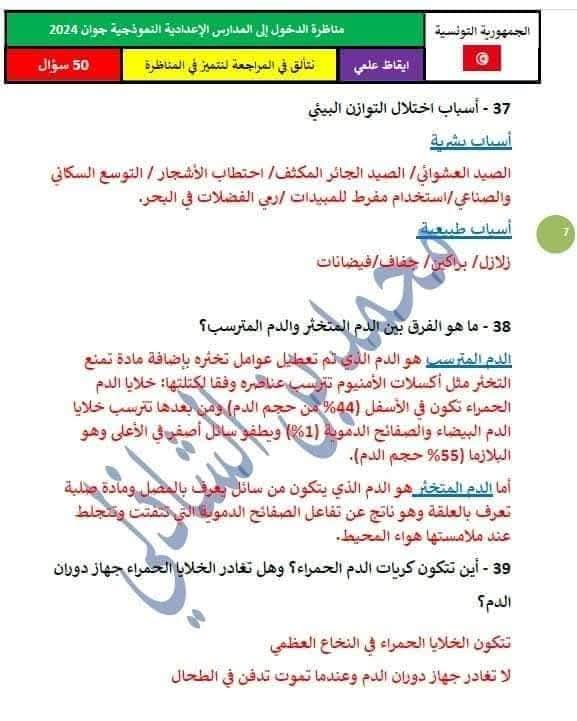 سنة سادسة – 50 سؤال + الإصلاح في مادة الإيقاظ العلمي بمثابة حوصلة لكل البرنامج